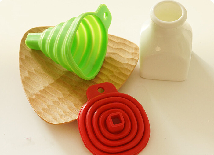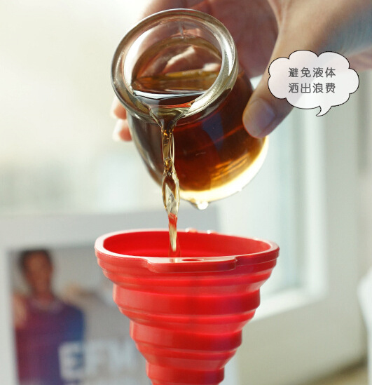 1、創意硅膠折疊漏斗,用于廚房內醬油、料酒等的灌裝,食品級硅膠材質,持久耐用