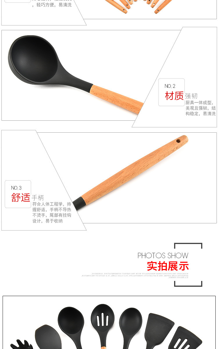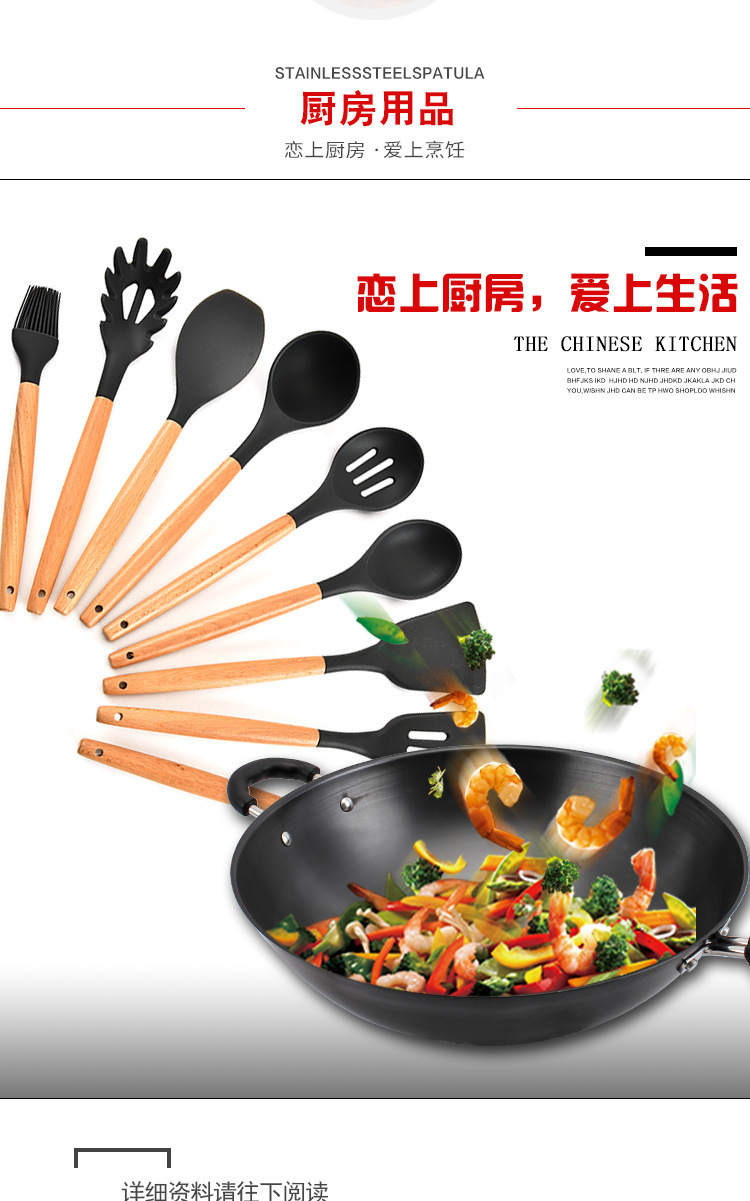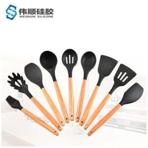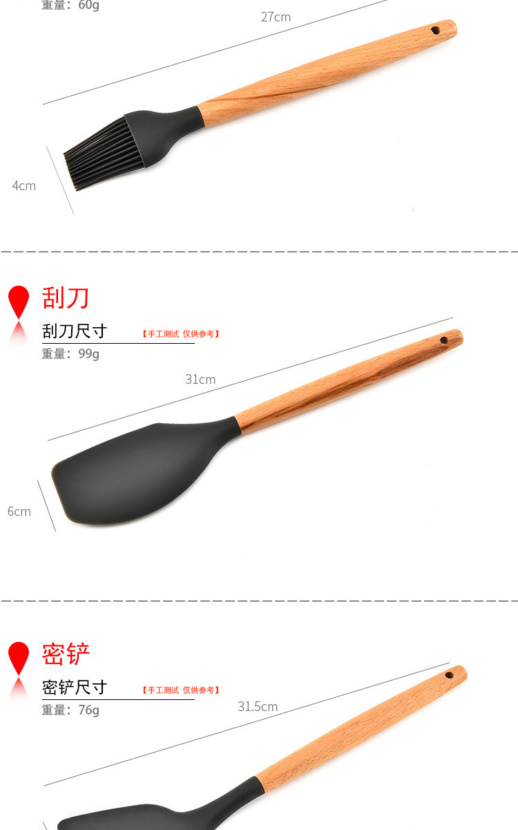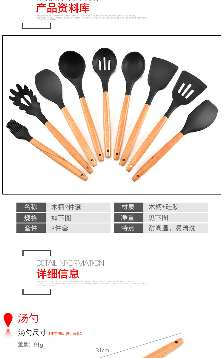 名稱:木柄9件套硅膠廚具,硅膠廚具九件套木柄