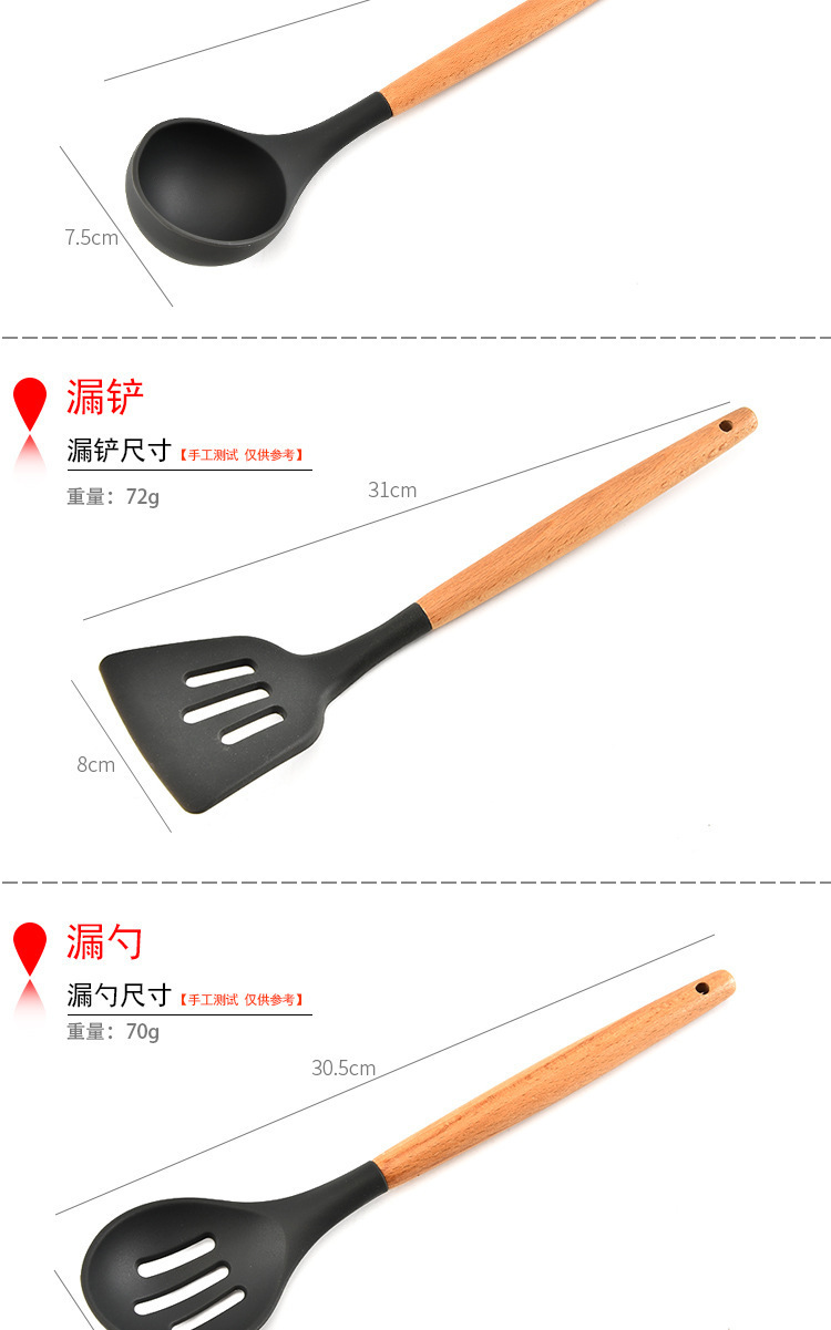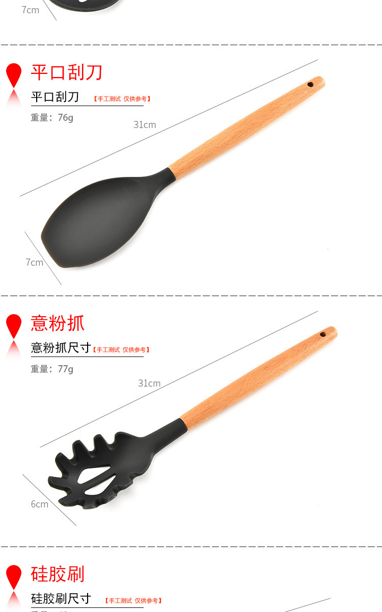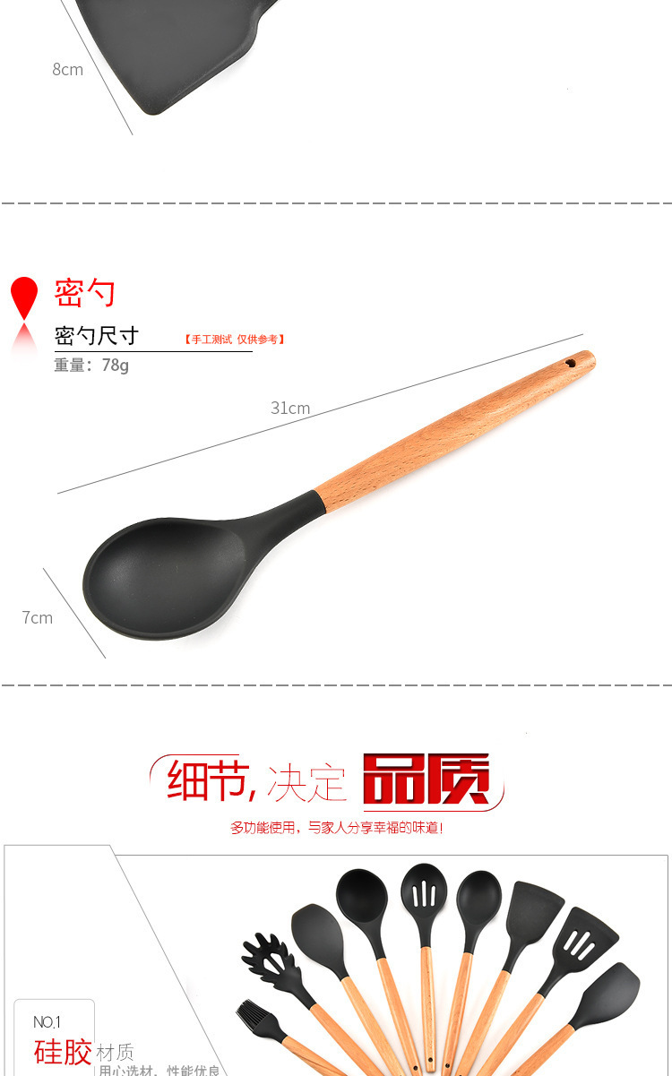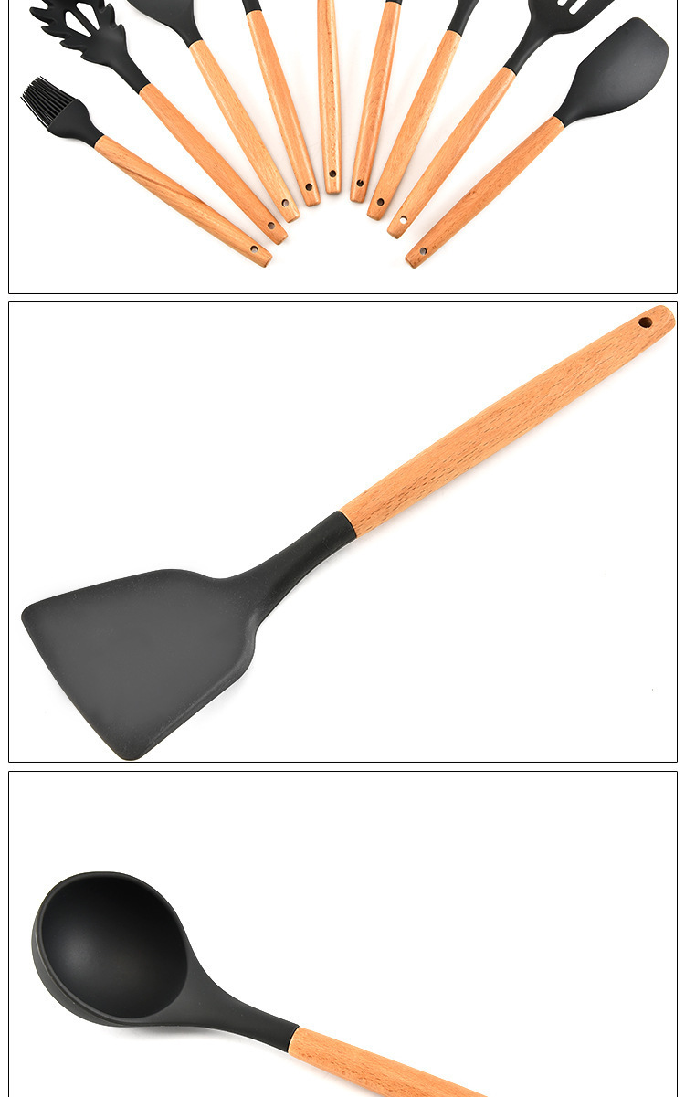 名稱:木柄9件套硅膠廚具,硅膠廚具九件套木柄