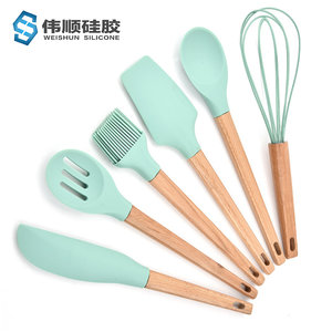 - 木柄硅膠廚具6件套,硅膠廚具六件套木柄