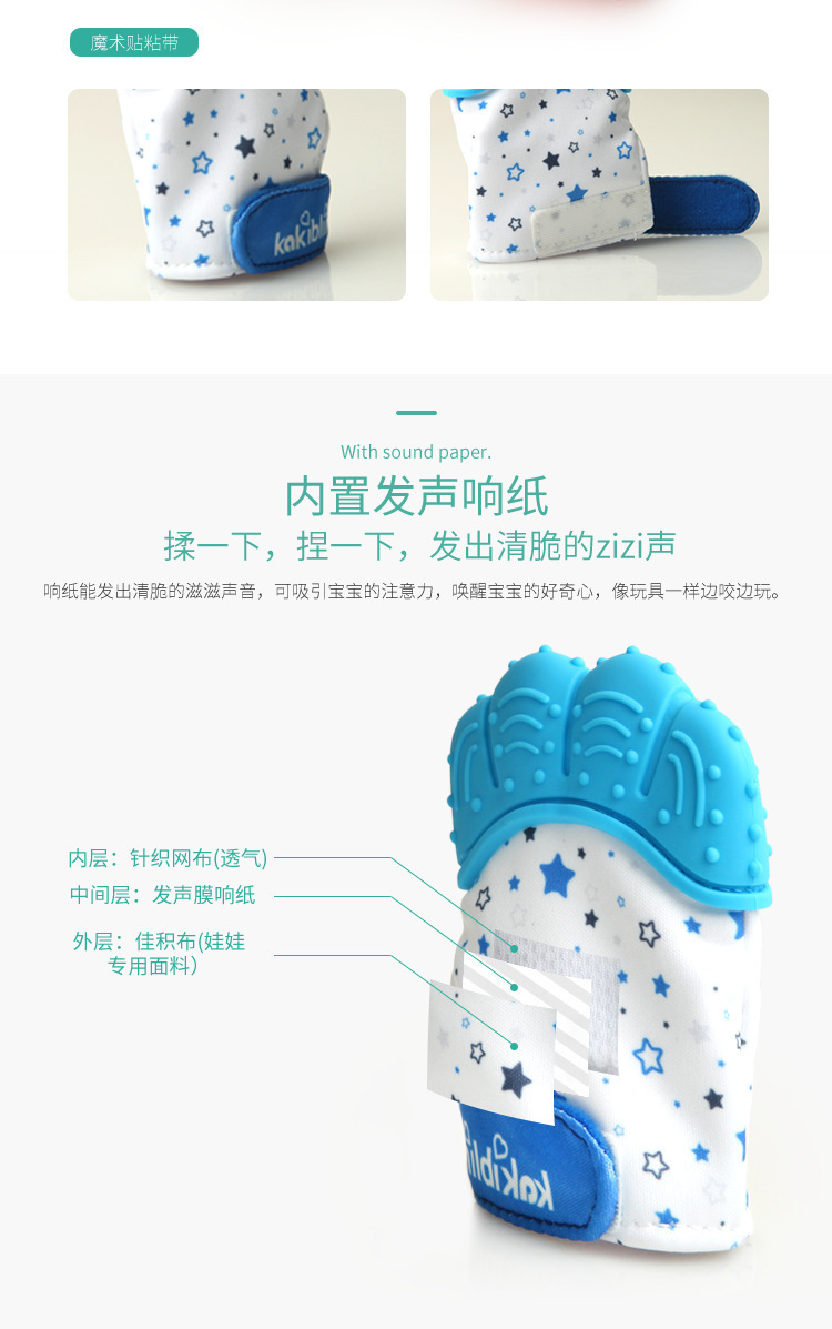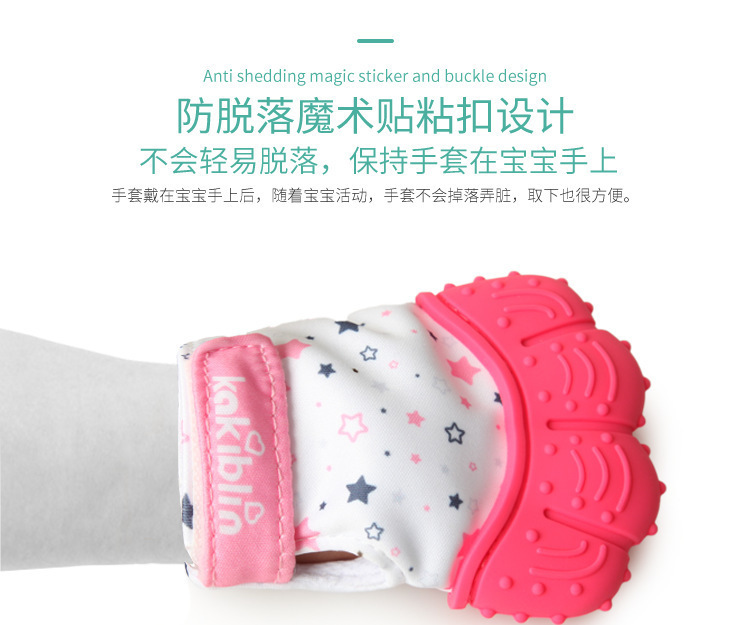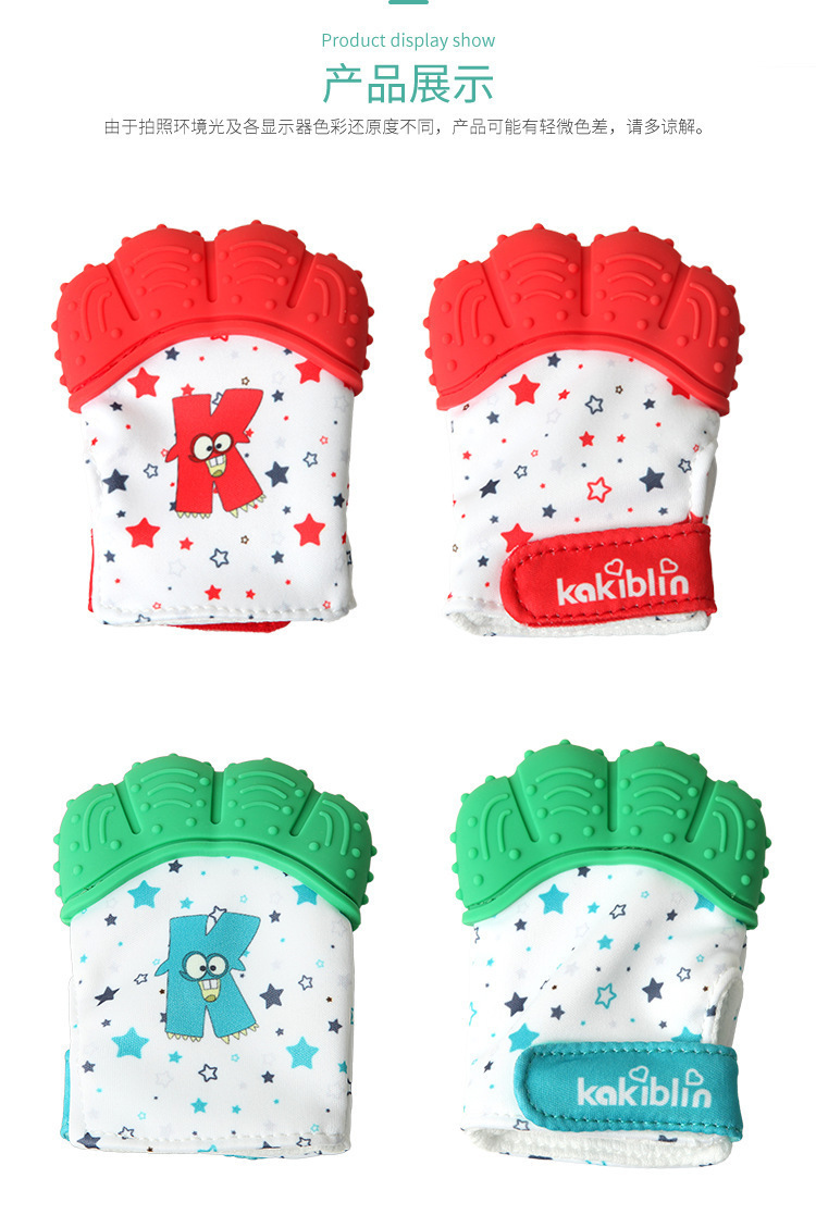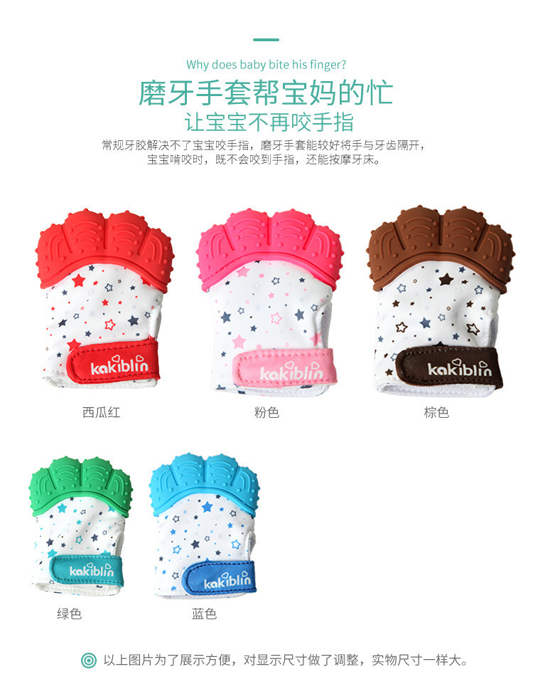 產(chǎn)品用途:牙膠手套可以更好的將手和牙齒隔開(kāi),寶寶啃咬時(shí),既不會(huì)咬到手指,還可以按摩牙床。