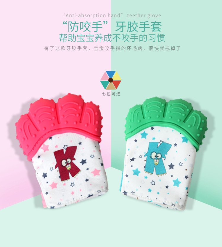 - 硅膠牙膠手套,硅膠磨牙棒手套,防吃手硅膠手套