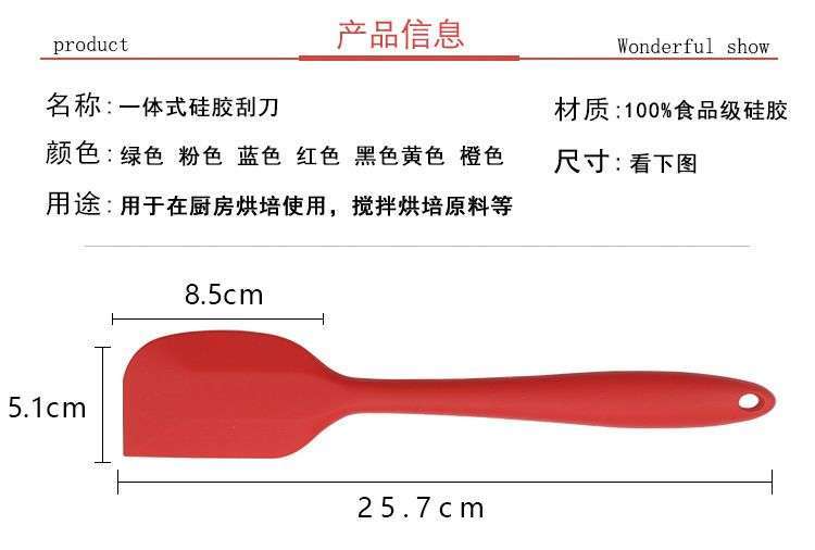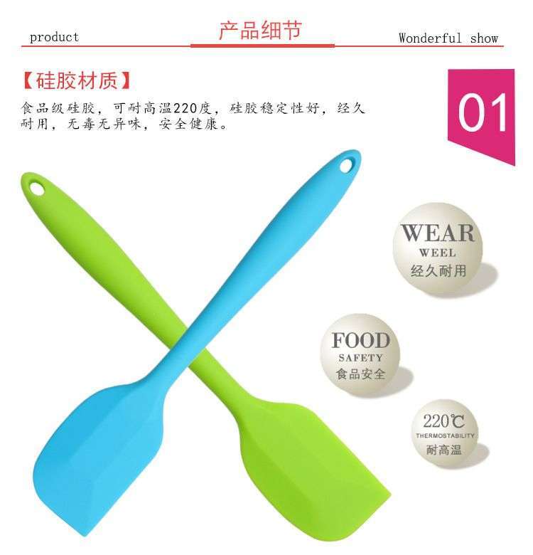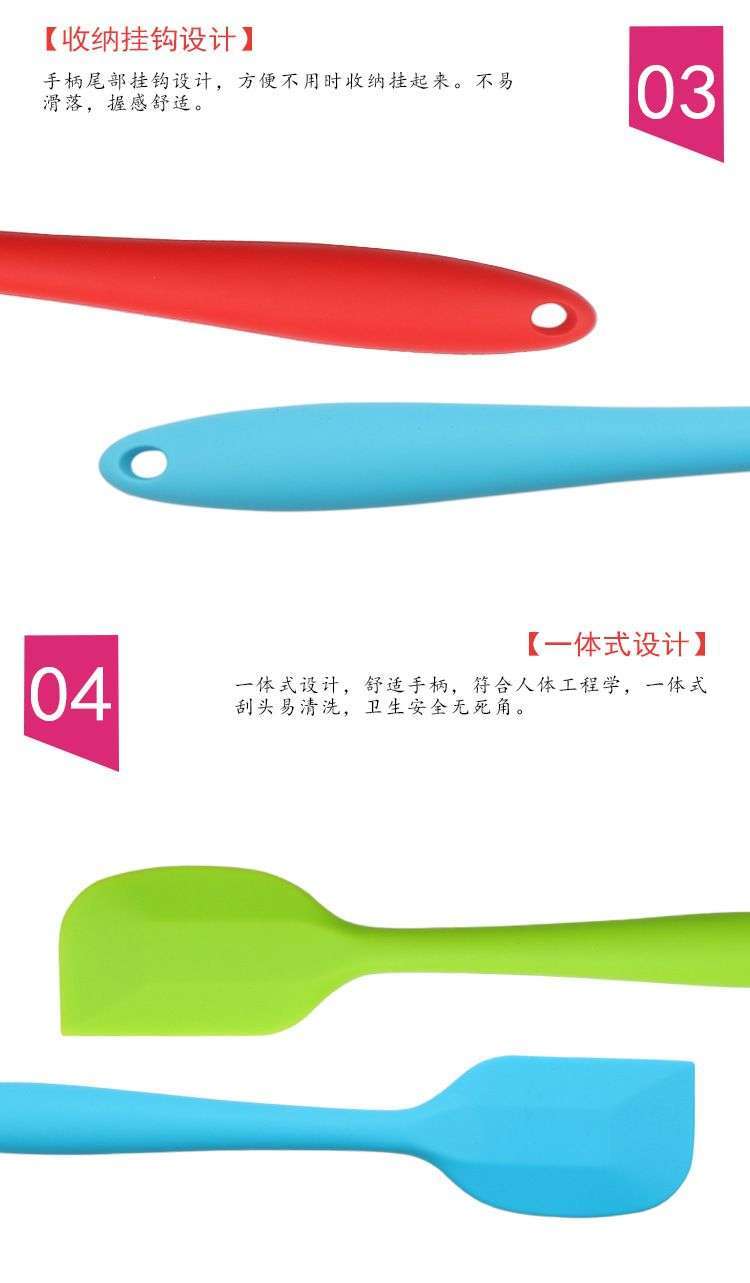 - 大號硅膠刮刀-食品級大號硅膠刮刀定制廠家-東莞烘焙用大號硅膠刮刀工廠價格,用途:做蛋糕,攪拌蛋白和蛋糕面糊均勻;可有效刮凈攪拌盆表面的殘留面糊、蛋白糊,集中食材并再次利用,減少損耗;抹平倒入模具中的面糊等等;清洗方便用于刮去不沾烤盤、不沾布、鋁合金烤盤等上面的殘渣、碎屑,不會刮傷產(chǎn)品表面。