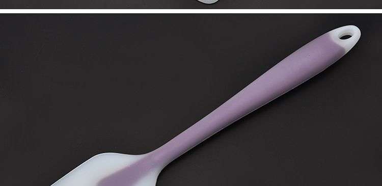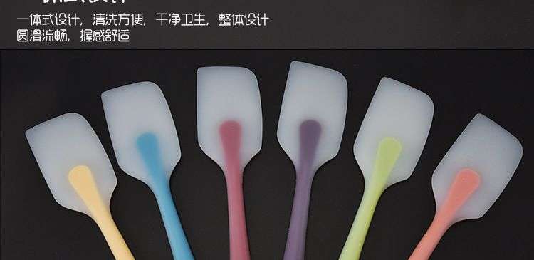 【說明】刮刀全身無縫隙無死角,容易清洗,不易滋生細菌,手柄外部是硅膠材質,內部包裹不銹鋼柄不易折彎,耐用。硅膠材質為可耐230度高溫,可在加熱過程中攪拌使用不會老化變硬。硅膠料符合美國FDA質量,無毒環保,耐溫-40℃到+230℃,無接縫,容易清洗一體刮刀,耐高溫220度,無接縫,容易清洗,不容易有死角。手感彈性非常好,用起來非常舒服的刮刀!