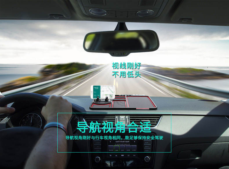 3、當你開車時,可以將手機垂直固定在防滑墊內,方便查看地圖。垂直放置時,可以方便的觸摸手機屏幕。