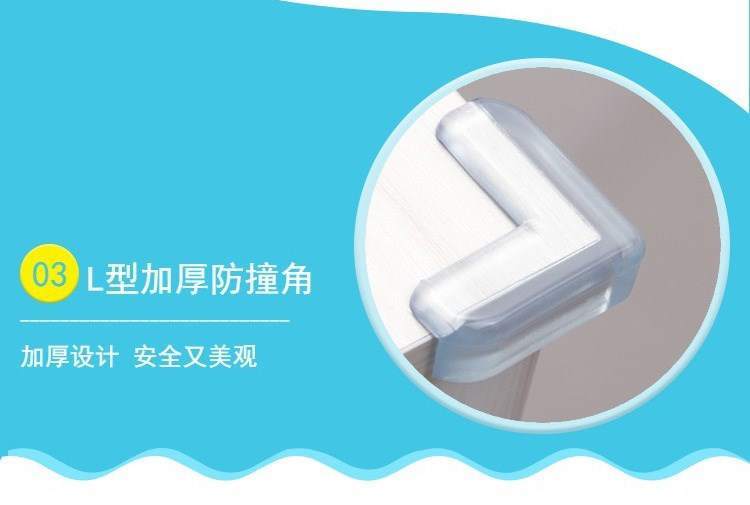 【適用范圍】: 安全又美觀,即讓寶寶和您的家人免受碰撞之苦,同時又不妨礙家具整體造型。適用于一般家庭中的桌角/床角/書柜/玻璃茶幾/樓梯角等容易產生危險的位置